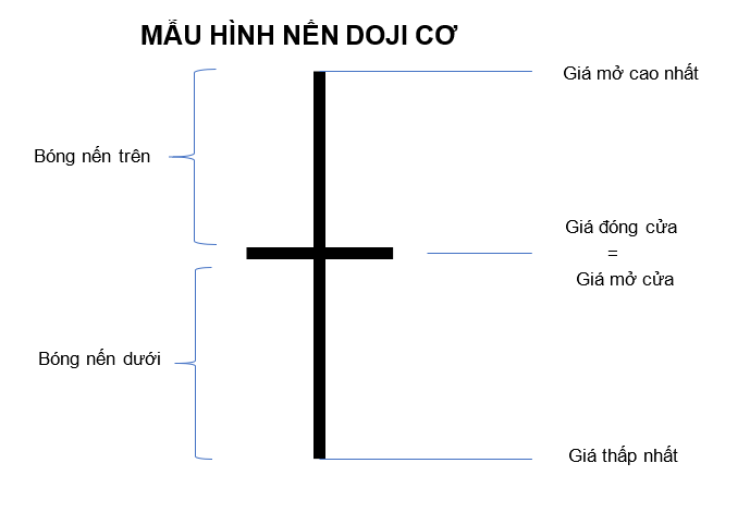 Doji là tên của mô hình nến kỹ thuật được hình thành khi mức giá trị khi kết thúc phiên giao dịch bằng lúc mở cửa. Doji có dạng giống như một dấu cộng (+). Nếu đứng độc lập,